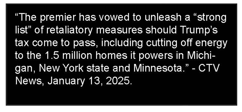 Irresponsibily, Premier Doug Ford has threatened to cut off electricity exports as a response to potential American tariffs: